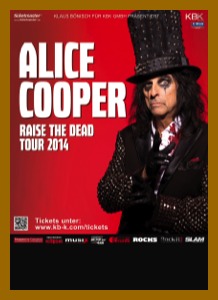 Die Geschichte begann 1948 in Detroit, Michigan. Eigentlich die Hochburg für Soul und Rhythm’n’Blues. Vincent aber wollte mehr – mehr Rock, mehr Show, mehr Grusel. Es fing prosaisch an. Mit Coverbands. Irgendwann nannte sich die Truppe The Nazz und schließlich Alice Cooper. Das war 1968 und der geniale Frank Zappa wurde erster Fan und Geburtshelfer. Nach zwei wenig erfolgreichen Alben wurde der Produzent Bob Ezrin auf die Schockrocker aufmerksam – und mit ihm kam der Durchbruch. Alice Cooper trat in Bondage-Klamotten auf, eine Boa um den Hals, wurde in Zwangsjacken gesteckt, gefoltert und – angetrieben von volltönendem Hard-Rock – schließlich dahingemeuchelt. Das Publikum war begeistert, die prüden Moralhüter Amerikas entsetzt. Dennoch: Mit Alben wie »Killer«, »School’s Out« und »Billion Dollar Babies« war Alice Cooper ein Garant für ausverkaufte Tourneen und Darling der Rockpresse – schrill, bizarr und höchst unterhaltsam. 1974 löste sich die Band auf, Furnier nahm den Namen Alice Cooper an und machte als Solokünstler weiter. Erst ein ernstes Alkohol-Problem bremste den Karriereschub. Aber der gläubige Familienmensch, seit über 30 Jahren verheiratet und Vater von drei Kindern, bekam auch das in den Griff. Der backstage eher zurückhaltende Schockrocker – im Nebenberuf: Restaurantbesitzer, Radiomoderator, Hobbyschauspieler und ein begeisterter Golfer mit Handikap 3 – ist inzwischen längst ein ›household name‹ geworden. Ohne ihn würde es Acts wie KISS oder Marilyn Manson nicht geben. Die Legende lebt und kommt 2014 für zwei ausgesuchte Sommershows nach Deutschland: Bühne frei für den Meister. Der Fürst der Finsternis lässt bitten und wünscht wohliges Gruseln bei den »Raise The Dead« Sommerkonzerten!