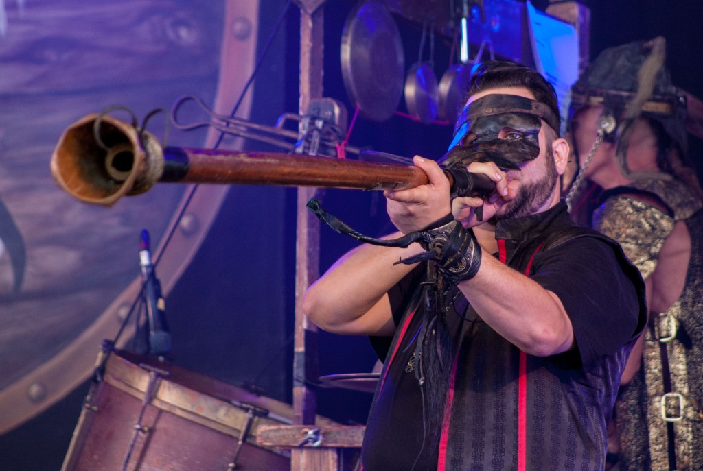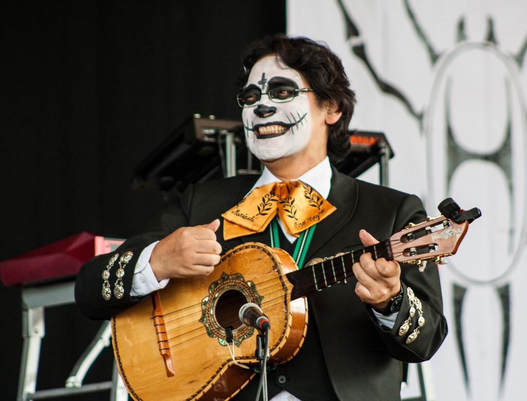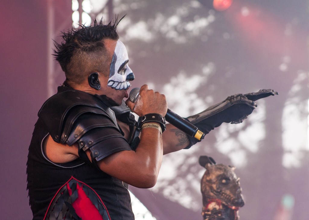 Centhron oder Corvus Corax, Mono Inc oder Mesh, Lord of the Lost oder Lacrimosa, Klangstabil oder Krupps, She past away oder Solar Fake? Bei insgesamt 34 Bands an zwei Festivaltagen und einem breitgefächerten Musikgeschmack bleiben Verschleißerscheinungen nicht aus. Wer sich nicht entscheiden kann und trotzdem alles hören will, muss das eben fußläufig wettmachen. Mainstage, Staatenhaus, Mainstage, Staatenhaus – zwischendurch vielleicht mal ein kurzer Erholungsstopp in der Lounge. Der mitten in einen riesigen Brunnen gesetzte Pavillion hat außer „Frozen Met“ bisweilen sogar Hardcore-Elektrolyte zu bieten: Irgendwann Samstagnacht steht plötzlich Erk Aicrag, Texter und Sänger von Hocico, hinterm Tresen und lässt sich im Ausschenken einweisen. Immerhin: Trinken kann der Mexikaner schon mal ganz gut.