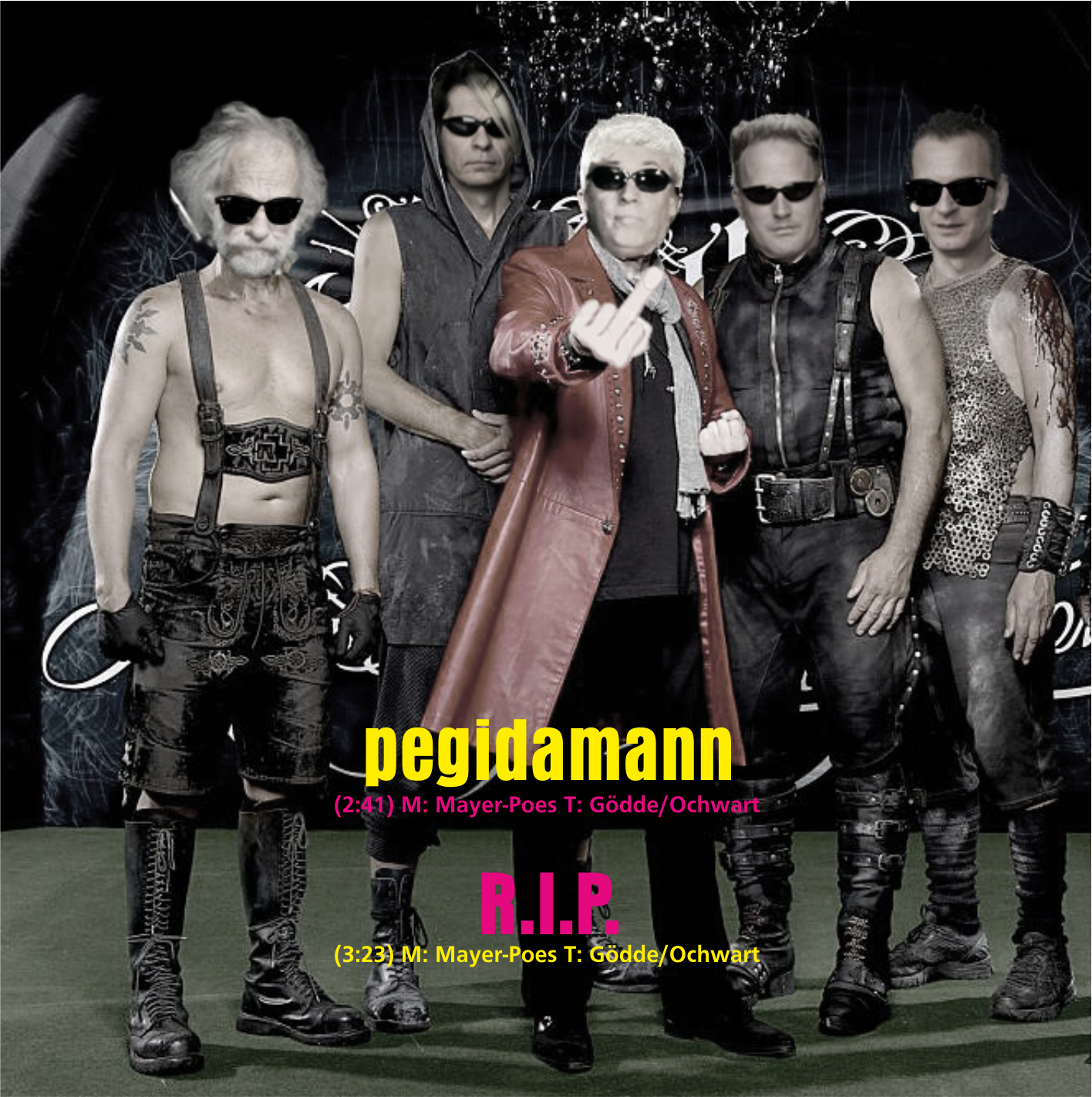 Heiter bis Wolkig sind Deutschlands Public Pop Enemy Nummer 1. Die neue Single „PEGIDAMANN“ (A-Seite) und „R.I.P. REST IN PEACE“ (B-Seite) der Punk-Kabarettisten von Heiter bis Wolkig, zusammen mit dem wahren Heino, Elf von Slime und Klaus dem Geiger eingespielt, setzt ein engagiertes, satirisches und antipatriotisches Punk-Statement gegen Deutschtümelei und Vaterlandsdiebe. Auf die beliebte Volksmelodie von „Mein Vater ist ein Wandersmann“ wird hier gemeinsam gegen Rechts gepunkrockt. Der zweite Song „Rest in Peace (R.I.P.)“ – eine weiterentwickelte, trotzige Adaption des Fanta 4-Klassikers MFG – treibt die Angelegenheit mit seinem fetten Rage against the machine-Beat noch auf die Hardcore-Spitze. VÖ: 22.05.2015