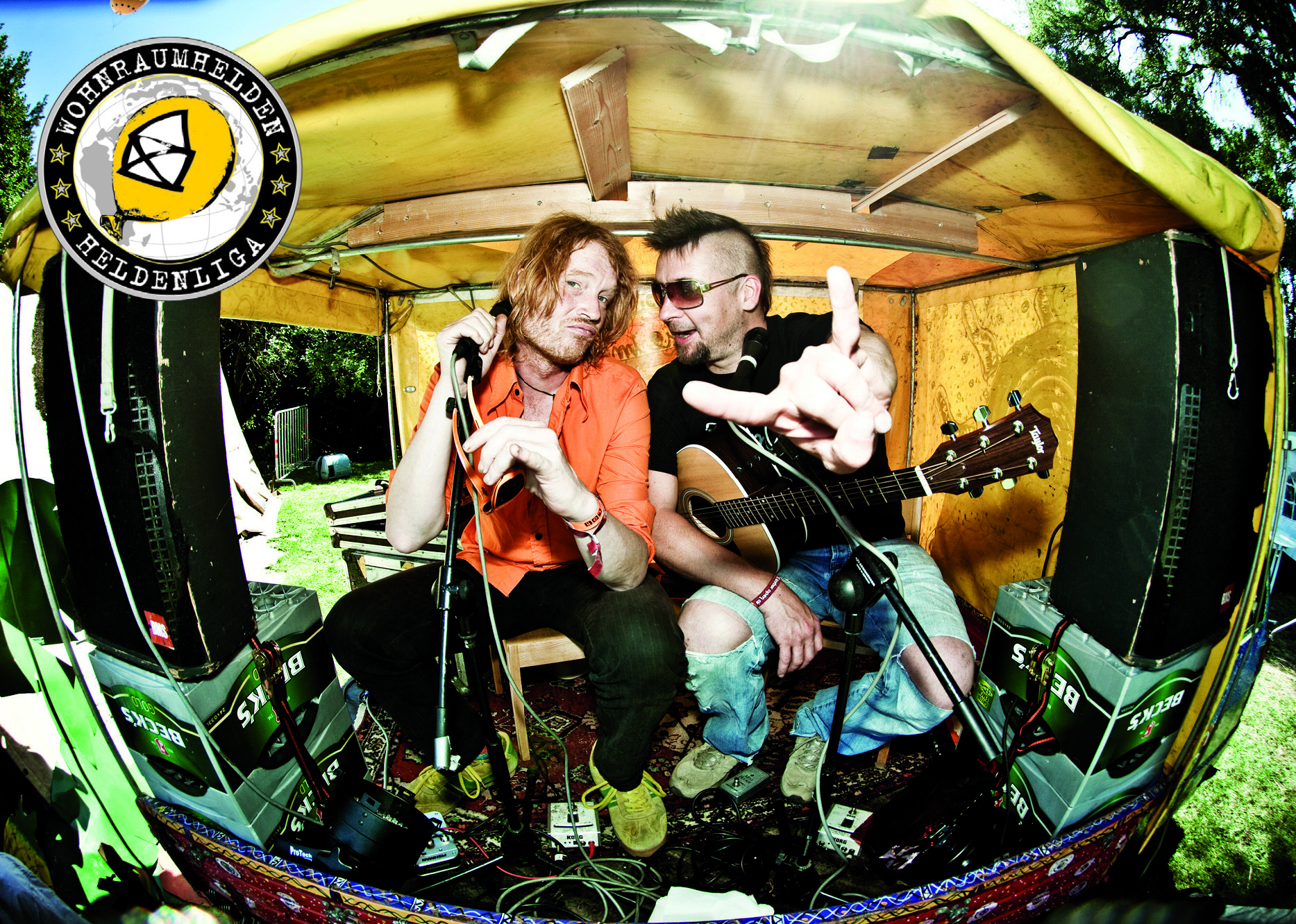 Außerdem geben sich die Publikumslieblinge aus 2013 ein weiteres Mal die Ehre: Die Wohnraumhelden aus Hannover, die im letzten Jahr mit der kleinsten mobilen Bühne der Welt an verschiedenen Orten auf dem Veranstaltungsgelände den Gästen eine Menge Spaß ins Gesicht und Rhythmus ins Tanzbein getrieben haben, konnten ein weiteres Mal verpflichtet werden. Sie sind Deutschlands schönstes Duo: C-Punkt Stein Schneider, die Stimme der Vernunft, und BMann Mayor, der Vulkan der Romantik. Wer ihn sieht, weiß, das ist untertrieben. B-Mann Mayor war Sänger der Legende „No Sex Until Marriage“, heute ist er Vater von Sohn Elvis, was zu Sportverletzungen führt und er trägt gerne Sonnebrillen. C-Punkt Stein Schneider hat unendlich rote Haare und war in seinem anderen Leben der eine der beiden Gitarristen der Erfolgskapelle „Fury in the Slaughterhouse“ und Ray Cokes hält ihn für den neuen Gitarrenheld Deutschlands. Die Wohnraumhelden sind die Ironiker des Rock, trotzdem sind sie alles andere als verkopft.